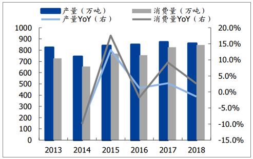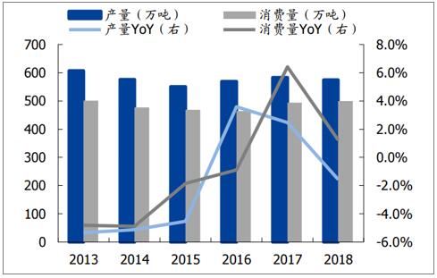 數據來源:公共資料整理 雙膠紙產量、消費量及同比增速