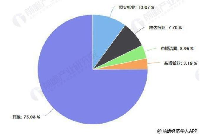 數(shù)據(jù)來源:前瞻產(chǎn)業(yè)研究院整理 中國(guó)生活用紙市場(chǎng)競(jìng)爭(zhēng)激烈 生活用紙的市場(chǎng)競(jìng)爭(zhēng)比較激烈,市場(chǎng)集中度相對(duì)較低,根據(jù)卓創(chuàng)資訊的統(tǒng)計(jì),生活用紙行業(yè)產(chǎn)能較大的前52家企業(yè)的產(chǎn)能之和,也僅占生活用紙行業(yè)總產(chǎn)能的40.44%,行業(yè)內(nèi)有大量的10萬噸以下的小產(chǎn)能。從產(chǎn)能口徑來看,行業(yè)產(chǎn)能前4的公司依次是恒安紙業(yè)、維達(dá)紙業(yè)、中順潔柔和東順紙業(yè),除中順潔柔外,其他三家公司均未上市。 行業(yè)龍頭恒安紙業(yè)是恒安國(guó)際全資事業(yè)單位,從事生活用紙產(chǎn)品生產(chǎn),擁有“心相印”、“安爾樂”等馳名商標(biāo),在重慶、湖南、山東等地建有造紙生產(chǎn)加工基地,年產(chǎn)能達(dá)到140萬噸以上。根據(jù)各公司2018年產(chǎn)能數(shù)據(jù)測(cè)算,生活用紙行業(yè)的CR4僅為24.65%,CR8和CR10也分別僅有30.45%和32.13%。 中國(guó)生活用紙市場(chǎng)競(jìng)爭(zhēng)格局分析情況