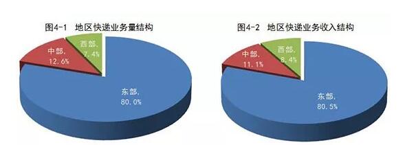 1-8月份,東、中、西部地區(qū)快遞業(yè)務(wù)量比重分別為80%、12.6%和7.4%,業(yè)務(wù)收入比重分別為80.5%、11.1%和8.4%。與去年同期相比,東部地區(qū)快遞業(yè)務(wù)量比重下降0.1個(gè)百分點(diǎn), 快遞業(yè)務(wù)收入上升0.3個(gè)百分點(diǎn);中部地區(qū)快遞業(yè)務(wù)量比重上升0.5個(gè)百分點(diǎn), 快遞業(yè)務(wù)收入比重基本持平;西部地區(qū)快遞業(yè)務(wù)量比重下降0.4個(gè)百分點(diǎn),快遞業(yè)務(wù)收入比重下降0.3個(gè)百分點(diǎn)。