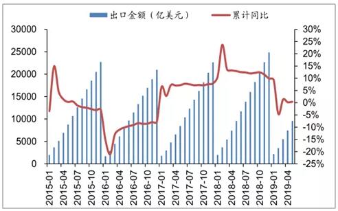 國際摩擦升級后需求總量受損,紙箱集中度仍有巨大提升空間,龍頭企業存在大幅機會 貿易格局變化背景下,包裝下游需求受到一定負面影響。 1)運輸包裝: 以瓦楞紙箱為代表的運輸包裝,主要承載運輸途中的保護作用。出口下滑,直接會導致國內運輸包裝需求的下滑。 從行業競爭格局的角度看,瓦楞紙箱的集中度仍有巨大的提升空間,龍頭企業存在大幅機會,但是,在近期國際摩擦升級后,需求總量的受損預計將在第三第四季度有體現。 2)展示包裝: 裕同科技的消費電子類訂單不少來自于全球大客戶,盡管公司大部分出口為保稅區轉口業務,不直接受加征關稅的影響。但是下游客戶銷售低迷、成本上行等問題,推動上游供應商訂單及利潤受到一定影響。 而勁嘉股份等面向國內需求的公司,在貿易格局背景下未收到直接沖擊。 中國貿易出口金額(累計值)