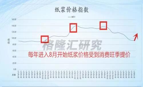 紙價上漲帶動紙漿價格上漲,紙價是紙漿的天花板,當紙價相對較高紙廠的利潤較好時,漿價就有上升的空間;相反當紙價處于低位時,紙廠利潤被壓縮,木漿就很難提價。紙漿價格無論是上升或者下降趨勢的時候,當8月開始,價格就出現明顯漲幅,屬于為“金9銀10”提前備貨需求漲價。