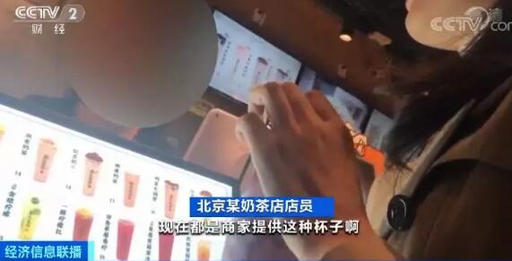 北京某奶茶店店員:現(xiàn)在都是商家在提供這種杯子。