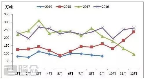 2017年開始,國內(nèi)環(huán)境污染治理空前嚴(yán)格,國家密集出臺了一系列的相關(guān)法律法規(guī)防污治污,進(jìn)口洋垃圾作為國內(nèi)環(huán)境治理的一條重要支線,進(jìn)口量出現(xiàn)了明顯的變化,其中進(jìn)口廢紙自2017年8月份開始,開始出現(xiàn)明顯的下滑。