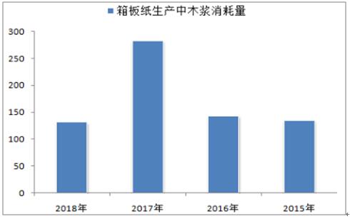 數據來源:公開資料整理 海外生產牛皮箱紙板的原料配比一般均用100%本色硫酸鹽本漿掛面,用廢紙漿作芯層。我國則采用40%~50%木漿與廢紙掛面,用廢紙漿做芯層。2018年隨著箱板瓦楞紙需求疲弱,生產箱板紙過程中木漿消耗量回落至132萬噸,未來隨著箱板紙景氣度回升,替代外廢仍未木漿需求的一個主要增量。 2018年箱板紙消耗木漿量回落到132萬噸