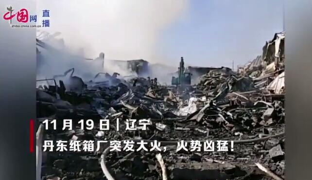 發(fā)生火災(zāi)的廠房是一座一層高的鐵皮屋,而這座廠房距離周邊的民宅很近。剛開(kāi)始,濃煙從鐵皮屋的各個(gè)窗口和縫隙處往外冒,沒(méi)多久,濃煙越來(lái)越大,并伴隨著明火!昂芸炀蜔饋(lái)了,嚇得我們趕緊往外跑!惫S附近的一位村民說(shuō),她當(dāng)時(shí)正在家里準(zhǔn)備吃午飯,看到濃煙后,就知道可能是哪里著火了,就招呼家人趕緊出來(lái),“等我們跑出來(lái)后,才知道是旁邊的工廠著火了!睋(jù)該村民介紹,這家工廠是生產(chǎn)包裝盒的工廠,規(guī)模并不大。 接到群眾報(bào)警后,龍海市消防大隊(duì)救援人員立即趕到現(xiàn)場(chǎng),并在周圍設(shè)立了警戒線。 幸運(yùn)的是,此次火災(zāi)沒(méi)有造成人員傷亡。截止11月20日下午2:30時(shí)許,大火已完全撲滅,火災(zāi)的原因仍在進(jìn)一步調(diào)查中。 (▲來(lái)源:海峽導(dǎo)報(bào),記者:王龍祥 文/圖) 3、遼寧丹東一紙箱廠突發(fā)大火,火勢(shì)兇猛! 11月19日晚,遼寧省丹東市一紙箱廠突發(fā)火災(zāi),火勢(shì)兇猛。從“中國(guó)網(wǎng)”的直播視頻上可以看到,現(xiàn)場(chǎng)已經(jīng)一片廢墟!