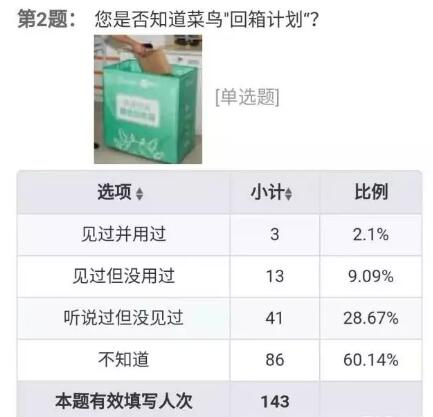 有站點負責人表示,回收的紙箱他們一般當天寄件就會消化,“紙箱的用戶回收率大約在20%-30%。我們不會主動提示用戶回收,怕影響派件速度。” 11月18日,京東物流推出“環保來敲門”行動。在用戶收到的京東快遞上,貼了一個綠色封條,上面印有“包裝回收再用,共同助力環保”的字樣。京東小哥在送貨上門時,可將用戶閑置的紙箱回收,并獎勵一定京豆。然而,快遞小哥幾乎也不會做任何提示。 在143位問卷受訪者中,只有3位知道并使用過京東的紙箱回收,近80%表示從未聽說過該計劃。