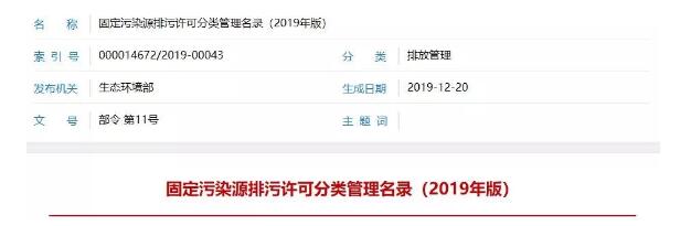 《固定污染源排污許可分類管理名錄(2019年版)》已經生態環境部部務會議審議通過,現予公布,自公布之日起施行。2017年7月28日原環境保護部發布的《固定污染源排污許可分類管理名錄(2017年版)》同時廢止。 生態環境部部長 李干杰 2019年12月20日 固定污染源排污許可分類管理名錄 (2019 年版) 第一條 為實施排污許可分類管理,根據《中華人民共和國環境保護法》等有關法律法規和《國務院辦公廳關于印發控制污染物排放許可制實施方案的通知》的相關規定,制定本名錄。 第二條 國家根據排放污染物的企業事業單位和其他生產經營者(以下簡稱排污單位)污染物產生量、排放量、對環境的影響程度等因素,實行排污許可重點管理、簡化管理和登記管理。 對污染物產生量、排放量或者對環境的影響程度較大的排污單位,實行排污許可重點管理;對污染物產生量、排放量和對環境的影響程度較小的排污單位,實行排污許可簡化管理。對污染物產生量、排放量和對環境的影響程度很小的排污單位,實行排污登記管理。 實行登記管理的排污單位,不需要申請取得排污許可證,應當在全國排污許可證管理信息平臺填報排污登記表,登記基本信息、污染物排放去向、執行的污染物排放標準以及采取的污染防治措施等信息。 第三條 本名錄依據《國民經濟行業分類》(GB/T4754-2017)劃分行業類別。 第四條 現有排污單位應當在生態環境部規定的實施時限內申請取得排污許可證或者填報排污登記表。新建排污單位應當在啟動生產設施或者發生實際排污之前申請取得排污許可證或者填報排污登記表。 第五條 同一排污單位在同一場所從事本名錄中兩個以上行業生產經營的,申請一張排污許可證。 第六條 屬于本名錄第1至107類行業的排污單位,按照本名錄第109至112類規定的鍋爐、工業爐窯、表面處理、水處理等通用工序實施重點管理或者簡化管理的,只需對其涉及的通用工序申請取得排污許可證,不需要對其他生產設施和相應的排放口等申請取得排污許可證。 第七條 屬于本名錄第108類行業的排污單位,涉及本名錄規定的通用工序重點管理、簡化管理或者登記管理的,應當對其涉及的本名錄第109至112類規定的鍋爐、工業爐窯、表面處理、水處理等通用工序申請領取排污許可證或者填報排污登記表;有下列情形之一的,還應當對其生產設施和相應的排放口等申請取得重點管理排污許可證: (一)被列入重點排污單位名錄的; (二)二氧化硫或者氮氧化物年排放量大于250噸的; (三)煙粉塵年排放量大于500噸的; (四)化學需氧量年排放量大于30噸,或者總氮年排放量大于10噸,或者總磷年排放量大于0.5噸的; (五)氨氮、石油類和揮發酚合計年排放量大于30噸的; (六)其他單項有毒有害大氣、水污染物污染當量數大于3000的。污染當量數按照《中華人民共和國環境保護稅法》的規定計算。 第八條 本名錄未作規定的排污單位,確需納入排污許可管理的,其排污許可管理類別由省級生態環境主管部門提出建議,報生態環境部確定。 第九條 本名錄由生態環境部負責解釋,并適時修訂。 第十條 本名錄自發布之日起施行。《固定污染源排污許可分類管理名錄(2017年版)》同時廢止。 與造紙印刷包裝相關: