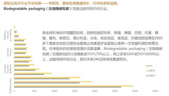行業未來三個月存在的風險點 物流:較多國家對來自中國的船舶、或曾掛靠中國港口的船舶實施嚴格的防控措施,令海運效率降低,海運成本大幅增加,造成貨主、承運人、買方的違約金風險升高、疫情期間出口受限、船舶需求率大幅下降,疫情后期或將面臨海運擁堵風險。 現金流:疫情影響下,企業沒有營業收入進項,同時還要支付大批員工工資和五險一金,以及廠房倉庫辦公室等租金,企業面臨極大的資金壓力,多數賬面資金僅夠維持2-3個月。 展會/消費者:線下展會取消/延期/待定,對包裝印刷商家造成獲客損失。同時,目前多國航班取消、停飛,以及入港船舶檢疫及管制,對海外用戶交付實效上也面臨考驗。 原材料:來自疫區或運輸途徑疫區的物料、半成品供應短缺。原材料價格上行,攤薄包裝印刷企業利潤。 勞動力:由于疫情隔離,勞動力將產生缺口。企業難以補充熟練勞動力,從而影響產能。 疫情下全球包裝印刷行業的機會所在 全球食品包裝和化妝品包裝需求穩步增長,80多個國家已頒發全面禁止或逐步全面禁止使用一次性塑料袋的政策法規,環保材料相關包裝在發達國家的增速明顯較高。但在常規包裝產品上,東南亞和南美也有需求上的異動,尤其可以注意的是印度尼西亞和墨西哥兩個國家。