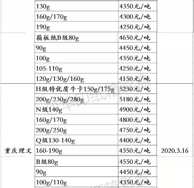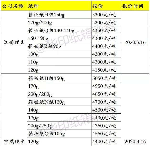 3、龍頭紙廠玖龍、理文的包裝紙參考報價