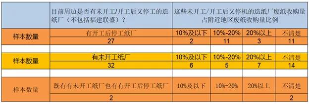 造紙廠停工情況 152個(gè)樣本中,有61個(gè)打包站表示,其所供應(yīng)的造紙廠有年后未開工/開工后又停工的現(xiàn)象。