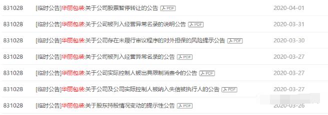 自年初宣布停產且無法確定復產時間之后,昔日河南包裝巨頭--河南華麗紙業包裝股份有限公司于近日又傳出新的消息。3月26日-4月1日,該公司連續發布多條公告稱:實際控制人被出具限制消費令、公司被列入經營異常名錄、股票暫停轉讓……