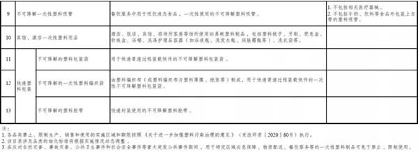 根據(jù)《征求意見稿》規(guī)定,禁止、限制使用的塑料制品包括不可降解塑料袋、不可降解一次性塑料餐具、賓館酒店一次性塑料用品、快遞塑料包裝等。其中,餐飲服務(wù)中禁用的不可降解一次性塑料包括餐盒 (含蓋)、碗(含蓋)、杯(含蓋)、盤、碟、刀、叉、勺等,但上述規(guī)定僅限于餐飲堂食服務(wù),餐飲打包外賣服務(wù)除外。