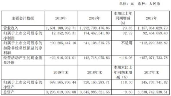 報(bào)告期末公司總資產(chǎn)為3,296,019,399.88元,較期初下滑9.60%;歸屬于上市公司股東的凈資產(chǎn)為699,565,706.44元,較期初增長(zhǎng)118.5%。