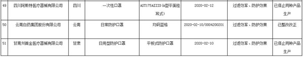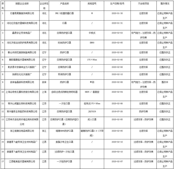 4月27日,市場監管總局官網公布非醫用口罩質量監督抽查不合格批次名單。今年2月以來,市場監管總局組織開展了非醫用口罩產品質量監督專項抽查,共檢出47家企業的51批次不合格產品,現將非醫用口罩質量監督抽查不合格批次名單公布如下。