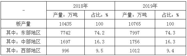 我國紙及紙張生產主要及中在東部地區,紙及紙張年產量1000萬噸以上的均分布在東部地區。2019年我國東部地區紙及紙板產量占全國紙及紙板產量比例為74.3%;中部地區比例占16.3%;西部地區比例占9.4%。 2019年紙及紙板生產量區域布局變化