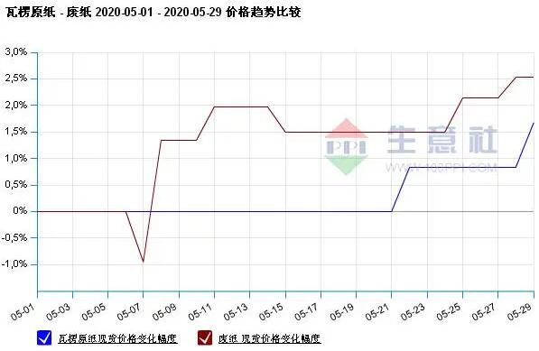 多重因素促使之下,5月11日,瓦楞市場局部地區出現上漲走勢,廣東、河南、河北及山東個別紙廠報價上調50-100元/噸,箱板紙市場穩定運行為主,個別報價上調50元/噸左右。 隨后幾日,上游國廢到廠價基本維持穩定,個別小幅調整。瓦楞紙市場跟隨其主以以橫盤整理運行為主,局部地區根據到貨量以及下游需求量等自身因素進行窄幅調整,整體以大穩小調運行。 20日,規模紙廠個別基地有漲價聲音傳出,上調幅度在30-50元/噸左右,其中以理文紙業上調最為明顯,瓦楞紙以及箱板紙幾乎全線上調50-70元/噸。因原紙瓦楞紙前期銷售價格偏低,企業成本壓力較大,紙企盼漲心態強烈,受規模紙廠個別基地漲價消息影響,市場觀望氣氛愈加濃厚,個別中小紙廠出現窄幅調整,部分中小紙企出現跟漲50-100元/噸。 隨后幾日市場依舊大穩小動,直至25日,玖龍紙業部分基地傳出漲價消息,其中東莞玖龍、太倉玖龍、重慶玖龍均上調瓦楞紙出廠價格50元/噸。 27、28兩日,中小紙企多紛紛跟漲,這一次龍頭企業拉動的漲價給中小紙廠以及二三級紙廠都帶來信心提振,給長期低需求及低端走勢的原紙市場帶來了希望。 截止5月29日,根據數據監測顯示,140g瓦楞紙均價3050元/噸,較本月初(5月1日參考價格3000元/噸)上漲1.67%。 后市預測 5月下旬,理文造紙宣布上調紙價,箱板紙、瓦楞紙漲價50元/噸。隨后幾日,市場觀望氣氛愈加濃厚,山東、河北等地有部分紙廠跟漲50元/噸。5月25日,包裝紙行業另一龍頭紙廠--玖龍紙業也發布了漲價計劃,旗下多個基地上調50元/噸。 由于玖龍紙業加入漲價陣營,市場信心有所提振,多個地區的中小紙廠于5月27日、28日宣布上調,甚至還有紙廠在5月29日-5月31日發布了6月份的漲價函。 東莞市金田紙業有限公司 自2020年6月1日起,金娃牌環保?堅谠瓋r格基礎上上漲50元/噸。本次調價包含之前已收預付款及未交付的訂單。 漳州港興紙業有限公司 自2020年6月1日起,每個等級原紙價格調漲100元/噸。 東莞建暉紙業有限公司 自2020年5月28日起,各種等級涂布白板紙的人民幣銷售價格在原基礎上上漲100元/噸。 廢紙與瓦楞紙市場在月末之時能夠排除下游需求不足等因素聯動上漲,給6月紙業的整體行情都帶來極大的提振,業者信心增加,預計6月廢紙及瓦楞紙市場,將保持向上走勢為主。