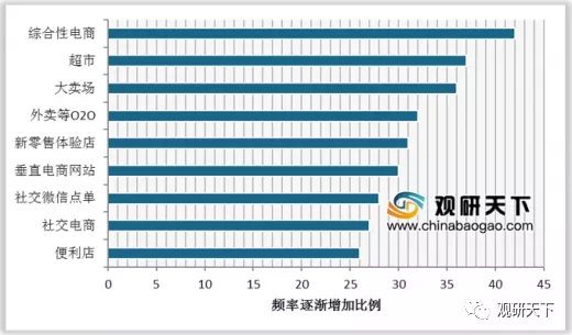 數據來源:公開資料 同時,疫情使線上渠道消費習慣更為普及,且在疫情之后仍有望繼續保持。據相關數據顯示,消費者在疫情之后,在電商平臺消費頻率逐漸增加比例最高,達42%。 疫情之后各消費渠道頻率變化趨勢