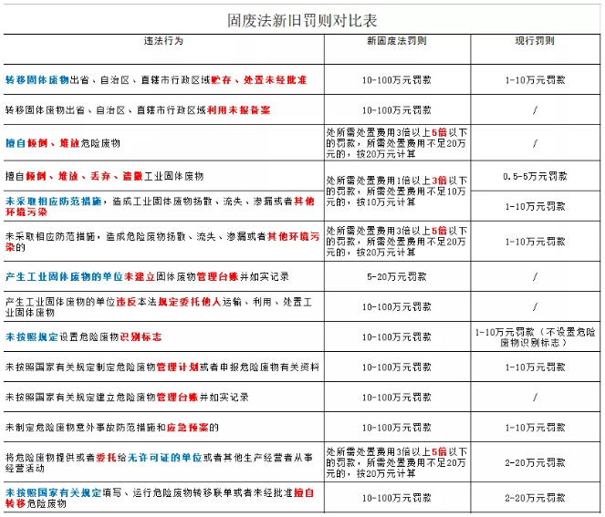 新修改的《固體廢物污染環(huán)境防治法》(以下簡稱新《固廢法》)對(duì)貫徹落實(shí)生態(tài)文明思想和黨中央有關(guān)決策部署,推進(jìn)生態(tài)文明建設(shè),打贏污染防治攻堅(jiān)戰(zhàn)具有重大意義,非常必要。特別是在當(dāng)前抗擊新冠肺炎疫情的關(guān)鍵時(shí)期,修訂固廢法,完善對(duì)工業(yè)固體廢物、包括醫(yī)療廢物在內(nèi)的危險(xiǎn)廢物,以及生活垃圾建筑垃圾等固體廢物的管理制度,非常及時(shí)。 新《固廢法》體現(xiàn)了新形勢下固體廢物污染環(huán)境防治成功經(jīng)驗(yàn),突出問題導(dǎo)向,回應(yīng)公眾期待,滿足實(shí)踐需求,健全長效機(jī)制,制度規(guī)范可行,用最嚴(yán)格制度最嚴(yán)密法治保護(hù)生態(tài)環(huán)境,對(duì)加強(qiáng)疫情防控,打贏污染防治攻堅(jiān)戰(zhàn),必將發(fā)揮積極作用。 新《固廢法》加大了對(duì)固廢管理不合規(guī)的處罰力度,增加了企業(yè)的違法成本。普遍提高了違法行為的處罰金額,最高可罰至500萬元,除此之外還增加了按日連續(xù)處罰、行政拘留、查封扣押等執(zhí)法措施,充分體現(xiàn)了用最嚴(yán)格最嚴(yán)密的生態(tài)環(huán)境保護(hù)法律制度保護(hù)生態(tài)環(huán)境的思路。 處罰金額大幅度提高