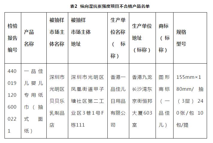 (二)縱向濕抗張強度:本次抽查判定1款產品縱向濕抗張強度項目不合格。該項目主要考核紙制品的物理強度。該項目不合格,紙張浸水易爛或在使用中紙張易產生掉毛、掉粉的情況,影響使用性能。縱向濕抗張強度項目不合格產品名單見表2。