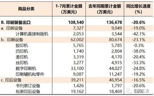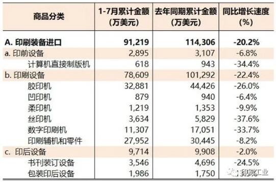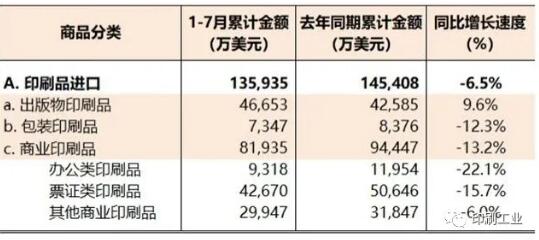 本期數據觀察 2020年1月—7月,國內印刷品、印刷裝備、印刷器材進出口總值較去年同期下降29.4%。其中,進口下降11.9%,出口下降33.9%。由于出口下降遠大于進口,國內印刷相關產業商品進出口順差幅度與去年同期相比大幅收窄(-41.6%)。 本期,國內印刷品進出口較去年同期下降32.5%。其中,進口下降6.5%,出口下降36.7%。與上期相比,國內印刷品進口和出口的下降幅度分別收窄了0.7個百分點和1.6個百分點。 本期,國內印刷裝備進出口下降幅度為20.4%,且進口下降的幅度(20.2%)與出口下降的幅度(20.6%)頗為接近。膠印機(下降26.0%)、數字印刷機(下降33.7%)是造成印刷裝備進口下降的主要因素,而數字印刷設備出口下滑幅度繼續擴大(24.8%),影響印刷裝備整體出口狀況改善。同期,包裝印后設備進口繼續保持增長(13.5%),而包裝印后設備出口也開始恢復增長(3.8%)。 本期,國內印刷器材進出口下降13.7%,而且其進口和出口下降幅度還在擴大。其他印刷油墨和水性噴墨墨水進口大幅度下降拖累印刷器材進口局面改善,而國內印刷器材各子項出口全線延續下降態勢,且降幅還在擴大。 鑒于國內外新冠肺炎疫情防控形勢的差異,國內印刷品、印刷裝備、印刷器材國際貿易出口下降幅度大于進口下降幅度的局面還將維持一段時間。本期海關進出口數據顯示,印刷品進出口下降幅度在收窄,而印刷裝備和印刷器材進出口下降幅度還在擴大。這種現象不僅可以理解為,印刷裝備、印刷器材制造企業對市場波動的反應的時間差,也可以看作是此次疫情加速印刷行業(特別是商業印刷領域)的產能整合背景下,國內印刷裝備和印刷器材市場結構的調整。無論如何,這意味著國內印刷裝備和印刷器材制造業的復蘇時間會更長! 。ū疚淖髡邽橹袊∷⒓霸O備器材工業協會副秘書長)