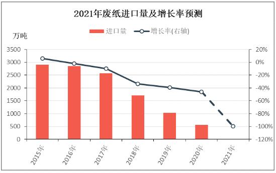 卓創(chuàng)預計,2021年進口廢紙數(shù)量為0萬噸,同比減少100%。固體廢物進口管理制度改革政策的目標是2020年年底前實現(xiàn)固體廢物的零進口。依照生態(tài)環(huán)境部官方消息,2021年關(guān)于固體廢物進口的申請將不再審批,即從2021年1月1日固體廢物進口將歸零,廢紙即固體廢物。