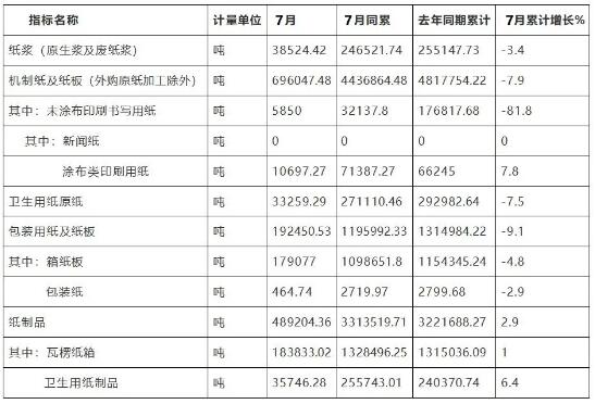 福建省造紙工業(yè)2020年1-7月份產(chǎn)品累計產(chǎn)量表