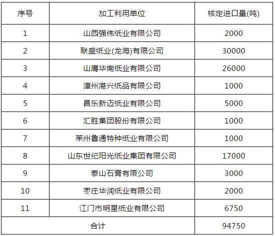 10月19日,環保部固體廢物與化學品管理技術中心公示了2020年第13批限制進口類產品明細,共有11家造紙企業獲批,總核定量9.475萬噸。截至目前,2020年總批準量達到674.8740萬噸,占2019年總量的62.77%。