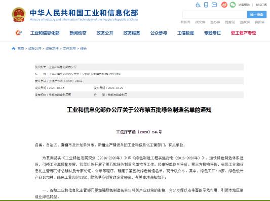 綠色制造工程是《中國制造2025》五大工程之一,旨在加快推進綠色制造,促進全產(chǎn)業(yè)鏈和產(chǎn)品全生命周期綠色發(fā)展,發(fā)揮綠色制造的先進示范帶頭作用。 10月29日,工業(yè)和信息化部正式公布第五批綠色制造名單,公司通過工信部組織的各項評估并順利入選。在管理層和各部門的大力支持下,這項浩大工程終于在長達近1年的準備工作之后畫上了一個圓滿的句號。