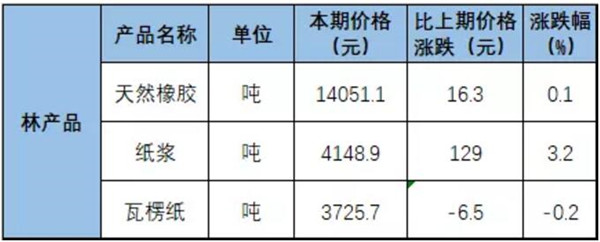 其中林產品領域,12月上旬與11月下旬相比,紙漿價格上漲129元,漲幅3.2%;瓦楞紙價格下跌6.5元,跌幅0.2%。