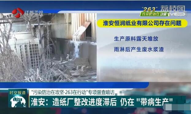 近日,江蘇省污染防治攻堅戰指揮部辦公室派出督查組,對各設區市開展環保專項督導檢查工作。發現淮安恒潤紙業有限公司整改進度滯后,環境污染問題突出,仍在“帶病生產”。