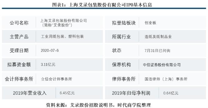 12月23日晚間,深交所官網發布的創業板上市委2020年第59次審議會議結果公告顯示,上海艾錄包裝股份有限公司(以下簡稱“艾錄股份”)的首發符合發行條件、上市條件和信息披露要求。  這意味著,2020年第六家新上市的包裝印刷企業誕生了!  資料顯示,艾錄包裝是少數掌握高品質工業用紙包裝產品和復合塑料包裝產品核心技術的國內企業之一,具備較強的技術研發能力。公司是“上海市高新技術企業”,曾先后被評為“上海市認定業技術中心”、“金山區企業技術中心”、“金山區專利工作試點單位”、“上海市科技小巨人企業”。 數據顯示,截至目前,艾錄股份先后獲得115項專利,其中20項發明專利、95項實用新型專利及外觀設計專利。公司的技術優勢為公司持續保持紙包裝行業領先地位提供了有力支撐,確保其能夠根據市場需求迅速地推出新產品,提高產品的附加值,增強公司議價能力。  目前艾錄股份服務于400余家客戶,以世界500強和行業龍頭為主。憑借優良的管理體系、先進和智能的生產能力、符合食品級和GMP標準的潔凈環境和長期穩定的質量控制能力、提供一體化包裝解決方案的能力,艾錄股份在行業內樹立里了良好的市場聲譽和品牌影響力。國內外龍頭企業的認可進一步證明艾錄股份的技術水平、產品質量、綜合服務能力已經具備國內外領先水準。  此次艾錄股份擬登陸創業板募集資金主要是投向“工業用環保紙包裝生產基地擴建項目”、“復合環保包裝新材料生產線技改項目”、“智慧工廠信息化升級改造項目”等。隨著募投項目的完成,將進一步提高艾錄股份包裝產品的生產能力、進一步豐富產品結構、提高自動化生產水平,為公司未來市場份額以及競爭實力的提升奠定基礎。  隨著艾錄上會成功,今年的上市包裝印刷企業已經達到六家!此前的五位分別是: 于9月10日創業板上市的龍利得智能科技股份有限公司, 于9月21日中小板上市的廣東天元實業集團股份有限公司, 于11月6日中小板上市的金富科技股份有限公司, 于12月11日上市的杭華油墨股份有限公司, 于12月22日上交所主板上市的森林包裝集團股份有限公司。