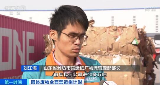 山東省濰坊市某造紙廠物流管理部部長 劉江海:前年我們公司進40多萬噸,去年進30幾萬噸,今年進14萬噸,逐年降低。我們主要通過國內廢紙和部分進口再生紙漿來補足缺口。 隨著禁止進口固體廢物方案的逐漸落實,我國固體廢物的進口量也逐年下降,生態環境部數據顯示,截至11月15日,今年全國固體廢物進口總量為718萬噸,同比減少了41%。業內專家表示,固體廢物進口使企業以較低的成本獲得一定的再生資源,但對生物安全的威脅,對環境的危害更加不容忽視。