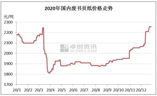 從2020年國廢書頁紙的行情走勢看,在經歷了3月份的快速跳水,4月初的小幅反彈后。從四月中旬直至10月底,市場行情整體呈弱勢調整的格局。卓創認為,11月份以來,廢書頁紙價格的快速上漲的原因是供需面出現階段性失衡。 1.廢書本紙供應偏緊的格局開始顯現。通過卓創跟蹤市場了解的情況看,由于廢書本紙從4月到10月期間,整體行情較為低迷,打擊了打包站的回收積極性。同時,由于廢書本價格低于廢黃板紙價格,很多打包站也把廢書本摻到廢黃板紙里去。本來國內的廢書本供應就偏少,而打包站回收積極性下降,還有部分貨源分銷到黃板市場,導致了市場上貨源供應減少。 從進口外廢情況看,2020年年底外廢進口全面禁止。根據卓創資訊了解的情況,由于擔心中國對進口固廢處罰力度加大,從11月開始,各船運公司已停止外廢進口接單,也意味著,外廢進口從11月份已基本停止。此時,各大紙企也開始加大國內廢書本的紙的采購,順勢上調了廢書本價格。 從海關數據看,2020年1-11月廢書本報紙進口量在100.4萬噸,較2019年減少了47.26%。由于擔心2021年外廢“零進口”,國內廢書本供應缺口將放大,這也加大了市場對國廢供應緊張的預期,市場惜售心態加重。