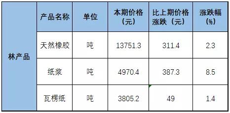 其中林產(chǎn)品領(lǐng)域,1月上旬與12月下旬相比,紙漿價格上漲387.3元,漲幅8.5%;瓦楞紙價格上漲49元,漲幅1.4%。