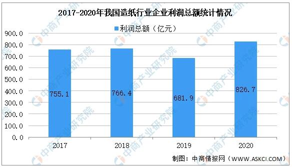 數(shù)據(jù)來(lái)源:中商產(chǎn)業(yè)研究院大數(shù)據(jù)庫(kù) 三、中國(guó)造紙行業(yè)利潤(rùn)總額上升 2020年中國(guó)造紙企業(yè)利潤(rùn)較2019年有所上升,造紙企業(yè)利潤(rùn)總額由2019年681.9億元降至2020年的826.7億元,漲幅21.2%。