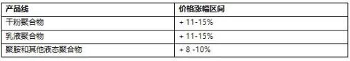漲價調整即日起正式生效,或具體執行視現有合同及條款而定,相關產品和價格漲幅區間如下: