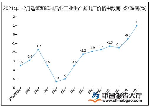 2021年1-2月造紙和紙制品業(yè)工業(yè)生產(chǎn)者出廠價(jià)格指數(shù).