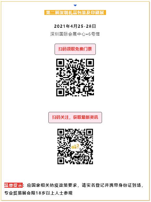 深圳市喜上精品包裝有限公司案例 高顏值、精良化、定制化、創(chuàng)意化的包裝設(shè)計(jì)和印刷,給產(chǎn)品賦予更多美好想象,也給禮品屆帶來更多的增長(zhǎng)空間。想要了解新消費(fèi)時(shí)代產(chǎn)品包裝趨勢(shì)?想要一睹潮流包裝設(shè)計(jì)的風(fēng)采?一定不要錯(cuò)過深圳禮品包裝及印刷展,4月25-28日,深圳國(guó)際會(huì)展中心6號(hào)館,驚艷即將登場(chǎng)。觀眾掃碼預(yù)先登記,即可領(lǐng)取免費(fèi)門票,主辦方還為珠三角觀眾提供免費(fèi)巴士服務(wù)。