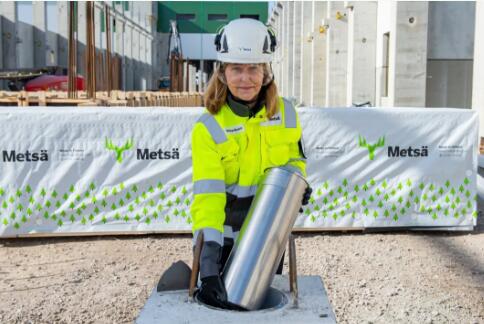 勞馬鋸材廠奠基石 芬林集團(tuán)旗下芬林芬寶正在芬蘭勞馬建造世界最先進(jìn)的鋸材廠。建造工作于2020年5月開始,鋸材廠奠基儀式于3月25日星期二舉行。由于疫情關(guān)系,奠基石由項(xiàng)目總監(jiān)Harri Haapaniemi和廠區(qū)總監(jiān)Liisa-Maija Perävainio放置于指定位置,現(xiàn)場(chǎng)沒有外部人士參加。