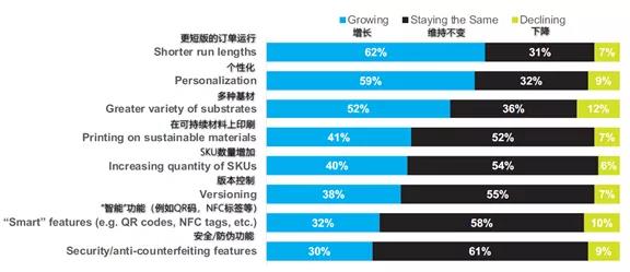 從生活方式的轉(zhuǎn)變到新印刷技術(shù)的發(fā)展,再到消費者需求等各方力量的匯總,正在不斷擴大瓦楞包裝的應用范圍,如將其保護產(chǎn)品的作用擴大到了銷售產(chǎn)品。從普通的黃板運輸紙箱,到具有高質(zhì)量圖形和印刷裝飾的產(chǎn)品容器的轉(zhuǎn)變,瓦楞包裝正為包裝印刷商/加工商提供更多機會。 用在瓦楞紙板或預印面紙上直接印刷的基材、油墨、裝飾技術(shù)和印刷噴頭的進步,使品牌所有者可以使用包裝產(chǎn)品來增強客戶體驗,并樹立品牌知名度。瓦楞包裝為這些企業(yè)提供了反復建立品牌知名度和聲譽的機會,因為瓦楞包裝從供應商,到發(fā)貨,到最終目的地都需要經(jīng)過很多人的努力。能夠更有效地增強瓦楞包裝的外觀,以及廣泛使用的能力,使其成為品牌、促銷和銷售的理想工具。 據(jù)世界造紙與包裝協(xié)會稱,如今的瓦楞紙箱比在其164年歷史中的任何時候都得到更廣泛的使用,這主要是由于電商增長。實際上,該組織認為瓦楞材料已經(jīng)進入了創(chuàng)造和使用的黃金時代。由Memjet贊助的這份特別報告結(jié)合耐普克研究公司的調(diào)查數(shù)據(jù)、包裝印象的行業(yè)報告和二次研究,以展示噴墨印刷、品牌所有者的需求和市場趨勢如何提升瓦楞包裝的質(zhì)量、作用和機會。 瓦楞包裝數(shù)字印刷的機會 瓦楞紙板是最常用的運輸材料,印刷技術(shù)的進步正在擴大其在產(chǎn)品包裝中的營銷作用。美國的纖維紙箱協(xié)會的市場數(shù)據(jù)突出了瓦楞包裝的流行和使用。該組織報告說,在美國,每年交付的瓦楞包裝達到了390億個,預計美國的瓦楞包裝和展示市場的規(guī)模為352億美元。 耐普克的研究調(diào)查表明,品牌所有者對使用瓦楞包裝非常感興趣,而且廢紙時機已經(jīng)非常成熟,他們發(fā)現(xiàn)品牌擁有者對瓦楞包裝的使用正在增長。此外,不少品牌所有者報告稱其已經(jīng)采用了數(shù)字彩色印刷機以印刷瓦楞包裝。 數(shù)字印刷鞏固了瓦楞包裝作為一種營銷工具的吸引力,因為它結(jié)合了高端印刷質(zhì)量和短版印刷的成本效益。伴隨數(shù)字印刷技術(shù)的日益成熟,越來越多的供應商可以提供數(shù)字印刷瓦楞包裝,隨之而來的是瓦楞包裝也越來越多地交付給品牌商。以前,由于需要專門的印刷和裝飾設(shè)備,因此瓦楞包裝市場很難采用噴墨印刷。 另外,數(shù)字印刷為品牌擁有者提供了直接在箱板紙或預印面紙上直接印刷,以生產(chǎn)瓦楞紙板的新可能性。新的商機包括經(jīng)濟高效地生產(chǎn)小批量訂單,改進圖形質(zhì)量,添加更多顏色(包括特殊效果),減少周轉(zhuǎn)時間,啟用更多版本,以及具有測試包裝概念的能力。 盡管瓦楞紙數(shù)字印刷開始日益盛行,但大多數(shù)瓦楞包裝使用的還是膠印或者柔印。柔印通常用于直接在瓦楞紙板上印刷一種或兩種顏色。膠印通常用于裱貼到瓦楞芯紙上的面紙上進行圖形印刷。耐普克/Memjet最近對瓦楞包裝印刷商/加工商的研究調(diào)查顯示為什么數(shù)字印刷是一種有吸引力的選擇。受訪者表示對短版印刷、庫存單位(SKU)數(shù)量增加、版本控制和安全功能(見下圖)的需求不斷增長,所有這些領(lǐng)域都非常適合數(shù)字印刷。更高的印刷質(zhì)量和短版的成本效率相結(jié)合,正在提高數(shù)字印刷瓦楞包裝的使用。