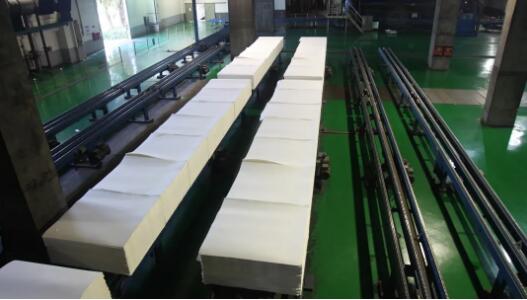 成品 成型的漿板由切紙機切分成一定重量大小的規(guī)格,然后再輸送到每一條包裝線。 為了運輸方便,傳輸帶上都是成品漿板,它們都是經(jīng)過白度和污點評判等級而篩選出的。 設(shè)備基本上全自動運行,一天的產(chǎn)量可有3000噸。除了機器檢修期間除外,其他時間都在不間斷的運行中。