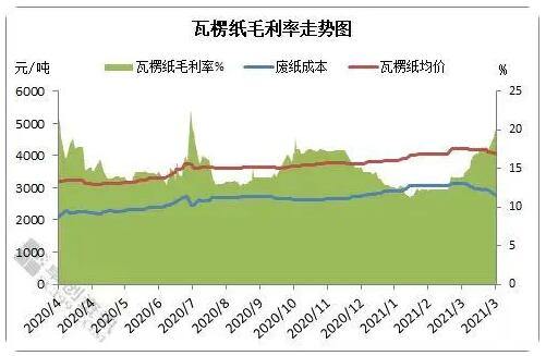 瓦楞紙毛利率走勢圖,來源:卓創(chuàng)資訊 在需求端強(qiáng)勢帶動(dòng)下,工業(yè)包裝紙廠商不僅能通過提價(jià)消化原料上漲壓力,整體毛利也有所增加。卓創(chuàng)資訊數(shù)據(jù)顯示,今年以來工業(yè)包裝紙主要品類之一的瓦楞紙毛利率進(jìn)入上升通道,一季度毛利增幅達(dá)到8%左右。 在此背景下,頭部廠商憑借庫存儲(chǔ)備和原料供應(yīng)優(yōu)勢,更能充分享受價(jià)差。上述相關(guān)負(fù)責(zé)人稱,景興紙業(yè)在去年加強(qiáng)原料儲(chǔ)備,一季度歸屬凈利潤大幅增長也有低成本庫存的貢獻(xiàn)。 據(jù)悉,今年開始禁止進(jìn)口廢紙的政策正式生效,由進(jìn)口廢紙加工而成的長纖維漿價(jià)格已提前水漲船高,呈現(xiàn)供不應(yīng)求局面。上述負(fù)責(zé)人告訴財(cái)聯(lián)社記者,長纖維漿供應(yīng)偏緊的局面或難以改變,公司長期看好該原料含量高的高端工業(yè)包裝紙價(jià)格走強(qiáng)。因此,公司在馬來西亞布局的長纖維漿項(xiàng)目建設(shè)進(jìn)度非常急迫,當(dāng)前公司已派駐第一批建設(shè)工人前往,有望在今年完工。 財(cái)聯(lián)社記者注意到,雖然當(dāng)前工業(yè)包裝紙仍處于價(jià)格高位,但一些跡象顯示需求端可能已開始疲軟。4月12日,有市場消息稱,東莞某紙企將開始廢紙收購價(jià)格降30元/噸,行業(yè)龍頭玖龍紙業(yè)也傳出優(yōu)惠出貨消息。 對于后市行情走向,上述負(fù)責(zé)人稱,當(dāng)前4月需求仍不錯(cuò),但造紙行業(yè)漲跌變化頻繁,很難準(zhǔn)確預(yù)判后市,總體而言,公司管理層預(yù)期仍比較樂觀。