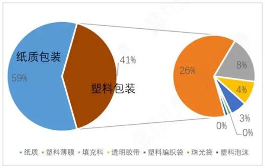 快遞包裝是典型的中游行業,行業上游主要是紙類、塑膠料等基礎原材料行業,企業規模較大。下游則是食品、煙酒、快遞、電子電器、日化用品等終端消費行業,應用領域廣泛。 快遞物流行業集中度高,帶動上游快遞物流應用材料行業集中度提升。快遞物流包裝的下游客戶主要為快遞公司,其周期性與下游快遞物流行業發展趨勢相似,近年來,全球快遞物流行業快速增長,尤其是我國快遞物流行業增長迅猛,為快遞物流包裝行業的快速發展奠定了基礎。 快遞包裝市場規模 據國家郵政局的統計數據,2020年我國快遞業務量完成830億件,同比增長30.8%,業務收入達8750億元,同比增長16.7%。 根據PitneyBowes發布的“包裹運輸指數”(ParcelShippingIndex):全球13個主要國家快遞物流包裹量從2014年的430億件增長至2018年的870億件,增長了104%,呈快速增長態勢。 同時其預計到2025年全球包裹總量將達到2,000億件。全球快遞物流行業的迅猛增長,為快遞物流應用材料帶來了龐大的市場需求。 快遞包裝結構 中國快遞業的包裝仍集中在六大類:快遞運單/快遞電子運單、編織袋、塑料袋、封套、包裝箱(瓦楞紙箱)、膠帶。 根據中華環保聯合會發布的《中國快遞包裝廢棄物產生特征與管理現狀研究報告》調查數據顯示,2019年全國635.2億件快遞中,塑料包裝快遞占比約為41.1%(包含塑料袋、珠光袋、編織袋、泡沫材料)。 塑料類包裝材料主要包括塑料袋薄膜(不包括珠光袋和填充薄膜塑料)、編織袋、泡沫箱、珠光袋、膠帶和填充塑料等,其中普通塑料袋薄膜占比最高,質量占比達62.9%,塑料袋薄膜、塑料編織袋和透明膠帶合計占比達到79%。 瓦楞紙箱快遞包裝的平均質量是329g,其中瓦楞紙304g,填充薄膜塑料16.8g,塑料膠帶2.7g,運單紙4.5g,膠帶芯廢棄量0.22g。 通過中國產業信息網數據測算,在30%的替代率下2025年將會有755萬噸箱板瓦楞紙新增需求,市場需求巨大。  資料來源:中華環保聯合會,東吳證券 快遞包裝競爭格局 快遞物流包裝行業,參與者較多,市場集中度相對較低,競爭程度較為激烈,尚未形成具有絕對規模優勢的企業?爝f物流包裝行業進入壁壘主要包含技術、環保、品牌信譽、規模和資金五個方面。 下游快遞行業集中度較高,快遞包裝行業集中度低也孕育了成長機遇,擁有客戶資源、技術及資金優勢的企業,未來將成為行業整合者與受益者,將有機會通過并購等方式進一步提高市場份額,提升行業地位。因此也更易規范快遞企業用紙質快遞箱替代塑料袋和編織袋快遞包裝,限塑令推行或將更為順暢。 隨著行業不斷發展,具有較強綜合實力、較大營收規模的企業脫穎而出,市場集中度將逐漸提高。 目前市場主要參與者包括方大股份、LawrencePackagingSupplyIndustries,Inc.、AntonDebatinGmbH、廣東天元實業集團股份有限公司、廣州九恒條碼股份有限公司、深圳市力科信實業有限公司、北京英格條碼技術發展有限公司、上悅(上海)印刷有限公司等。 未來:綠色化趨勢將進一步提升門檻 近年來,傳統包裝產品造成嚴環境污染問題,關注度提升引發行業自律。 當前,行業中廣泛使用的不可再生包裝產品回收利用率低,最終只能被填埋、焚燒,或進入河流、海洋和自然中成為失控垃圾。例如,快遞業包裝垃圾的總體回收率不足20%,其中紙盒回收率不到一半,塑料袋和填充物等回收率幾乎為零。 近年來,綠色化、減量化、可循環化”將成為包裝行業的發展方向,進一步提升快遞包裝門檻。 快遞物流應用材料中的可變信息標簽、快遞袋等通常具有一次性等特點,快遞行業高速發展的同時,快遞物流應用材料的消耗量也逐年增長。為減少快遞應用材料對環境造成的影響,國家陸續出臺了一系列政策。 國家郵政局持續探索與推進快遞包裝綠色化,并選取順豐等4家主要品牌企業開展綠色采購試點,同時組織申通等6家品牌企業開展可循環中轉袋(箱)全面替代一次性塑料編織袋試點。 隨著行業的快速發展與環保要求的逐漸提高,相關從業企業也實施舉措旨在推進環保包裝的使用。 在2018年至2019年期間,我國眾多快遞集團開展綠色包裝行動,其中:郵政集團在30個省完成配發綠色包裝箱,在北京和河南試用可降解包裝袋;順豐研發使用生物基材料包裝袋、無膠帶紙箱,推廣使用可循環中轉袋;申通與清華大學合作研發可降解的塑料袋;中通與第三方合作生產氧化和微生物雙降解的綠色包裝袋;菜鳥研發使用生物基材料包裝袋、無膠帶紙箱等;京東在生鮮業務上全面推廣全生物降解包裝袋。 根據《關于進一步加強塑料污染治理的意見》規劃,北京、上海、江蘇、浙江、福建、廣東等重點省市將先行試點禁用一次性塑料包裝,按照2019年的數據上述省市快遞業務量合計為305.86億件,占全國快遞總業務量的48.17%。 根據《意見》的時間線安排,到2022年,上述全國重點省市快遞塑料包裝將禁用不可降解塑料,到2025年全國快遞禁用不可降解塑料。 另外郵政管理部門將推動出臺《快遞業限制過度包裝要求》行業標準,結合行業實際進一步細化過度包裝的認定依據,并將在加強常態化監管的同時,于2021年4月份正式啟動過度包裝專項治理,爭取利用一年的時間,有效遏制過度包裝等違法違規行為,初步構建防止過度包裝的長效工作機制。