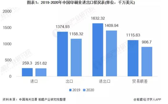2020年我國印刷品進口金額為25.16億美元,出口金額為115.83億美元,商業印刷品和出版物印刷品是國內印刷品進口的主要商品,包裝印刷品和商業印刷品是國內印刷品出口的主力。 2020年我國印刷品出口是進口的4.60倍 2020年我國印刷品進出口總額為140.99億美元,較去年同期減少22.24億美元,同比下降13.62%;其中進口額為25.16億美元,出口額為115.83億美元,貿易差額為90.67億美元。  包裝印刷品為印刷行業出口主要產品 2020年國內印刷品出口115.83億美元。其中,出版物印刷品出口15.65億美元、包裝印刷品出口54.57億美元、商業印刷品出口45.61億美元。出版物印刷品、包裝印刷品和商業印刷品出口占國內印刷品出口總值的比重分別為14%、47%和39%。  按照進出口金額大小排序,2020年國內印刷品出口前10位的商品是非瓦楞紙或紙板制的可折疊箱/盒、瓦楞紙或紙板制的箱/盒、紙袋、本冊等,其出口占國內印刷品出口總值的81%。  商業印刷品為印刷業主要進口產品 2020年國內印刷品進口25.16億美元。從進出口結構看,2020年國內印刷品進口,出版物印刷品、包裝印刷品和商業印刷品進口占印刷品進口總值的比重分別為,33%、6%和61%。商業印刷品和出版物印刷品是國內印刷品進口的主要商品。  按照進出口金額大小排序,2020年國內進口前10位的商品是票證、書籍、期刊、紙質的其他印刷品、貼花、標簽等,這10種商品進口占國內印刷品進口總值的93%。