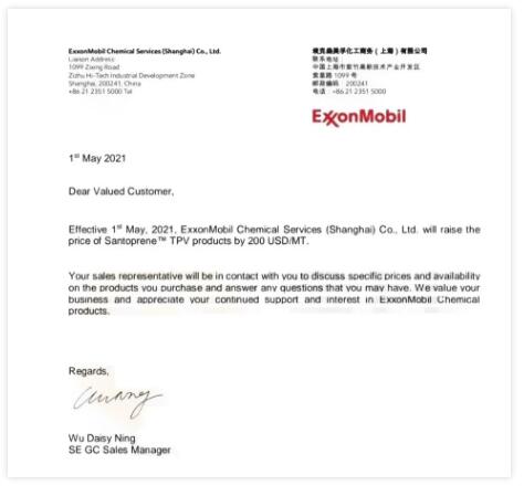 暴漲后接著連環漲,根本停不下來的節奏!整個制造行業早已經是一片雞飛狗跳。 一天一個價,一個小時一個價,報價信息不斷更新。價格暴跳上漲,令進貨商遲遲不敢出手。不買原料,無法生產;想買原料,價格跳漲難以負擔。企業陷入兩難境地...... 不少行業人士稱:連環漲價,或許會將部分企業推向絕境! 盛禧奧宣布調漲PSABS等產品最高上漲1300元 近日全球性材料以及塑料、乳膠粘合劑和合成橡膠的制造商盛禧奧發函,稱其在歐洲的附屬公司已宣布調漲其所有級別PS、ABS和SAN樹脂在歐洲地區的售價。 自2021年5月1日起,或根據現有合同條款,以下產品的合同和現貨價格將上調: 斯泰隆GPPS上調105歐元/噸(約818元/噸); 斯泰隆和斯泰隆A-Tech、斯泰隆X-Tech和C-TechHIPS上調105歐元/噸(約818元/噸); 邁純ABS樹脂上調160歐元/噸(約1247元/噸); TYRILSAN樹脂上調170歐元/噸(約1325元/噸)。 埃克森美孚宣布TPV上調1300元 5月1日,埃克森美孚決定從即日起提高Santoprene(TPV)產品價格200美元/噸(1286元)。