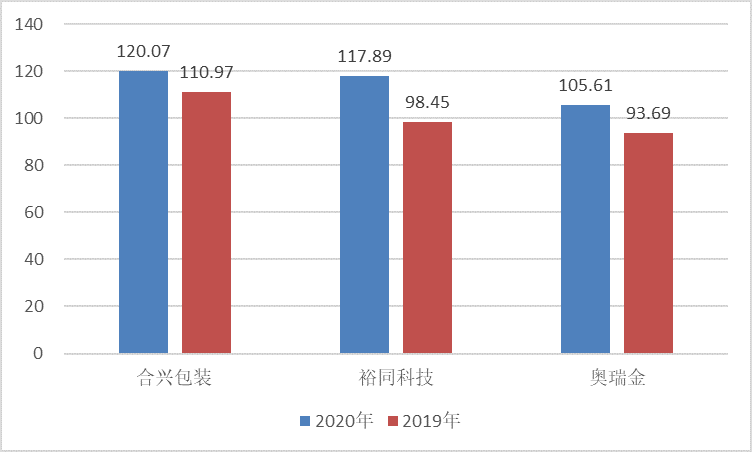 同年,合興包裝、裕同科技、奧瑞金的營收分別為15.21億元、16.09億元、19.63億元。