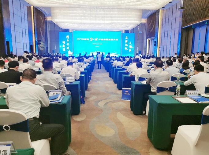 大會上還舉行了一系列簽約、授信儀式。未來5年,“5+N”產業集群企業可獲超5300億元的銀行授信額度。各市(區)圍繞“5+N”產業集群,加大產業鏈招商力度,大會共組織了15個重大項目現場簽約,總投資額達348億元,項目類別涵蓋了新材料、高端裝備、新能源汽車及零部件等產業集群,包括東莞市振亮精密科技有限公司、東莞市高盛集團有限公司、永達鋼鐵集團、廣東巴德富化學技術有限公司等15家企業。 在服務保障方面,為滿足產業發展的融資需求,工商銀行江門分行、農業銀行江門分行、建設銀行江門市分行、中國銀行江門分行等29家銀行機構對我市“5+N”產業集群開展授信,未來5年授信金額將超5300億元。 大會上,江門市國資委與恒健控股等10家投資機構現場簽約,組建江門市產業發展基金,母基金加子基金總規模超200億元。而在金融領域,大會推動市金融局與天風證券、財達證券、世紀證券、中山證券、浙商證券等5家證券公司簽訂戰略合作協議,共同探索在江門人才島設立證券公司一級機構,并以此為依托,為我市“5+N”產業集群提供優質資本市場服務。