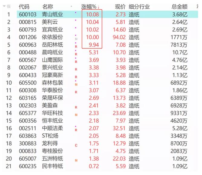 受紙張價(jià)格大幅上漲的影響,今天造紙股集體拉升。在造紙板塊31只股票中,有5只漲停。