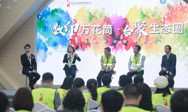 最后,合眾創亞集團總經理向正大先生、合眾創亞集團副總經理杜曉康先生、湖北合信智能包裝科技有限公司總經理馮霞、惠普公司亞太區包裝材料采購與供應鏈經理劉輝先生分別就湖北合興智能包裝的發展情況、該臺數字印刷機的性能、數字印刷技術亮點等話題展開深度交流,并向現場嘉賓解答疑問。隨后,四位領導再度上臺,正式開啟HPPageWideT400S現場演示活動。