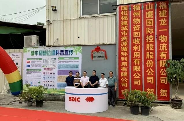 5月18日,福州市再生資源臨時分揀中心舉行“國投新供-山鷹福州加盟站”揭牌儀式。